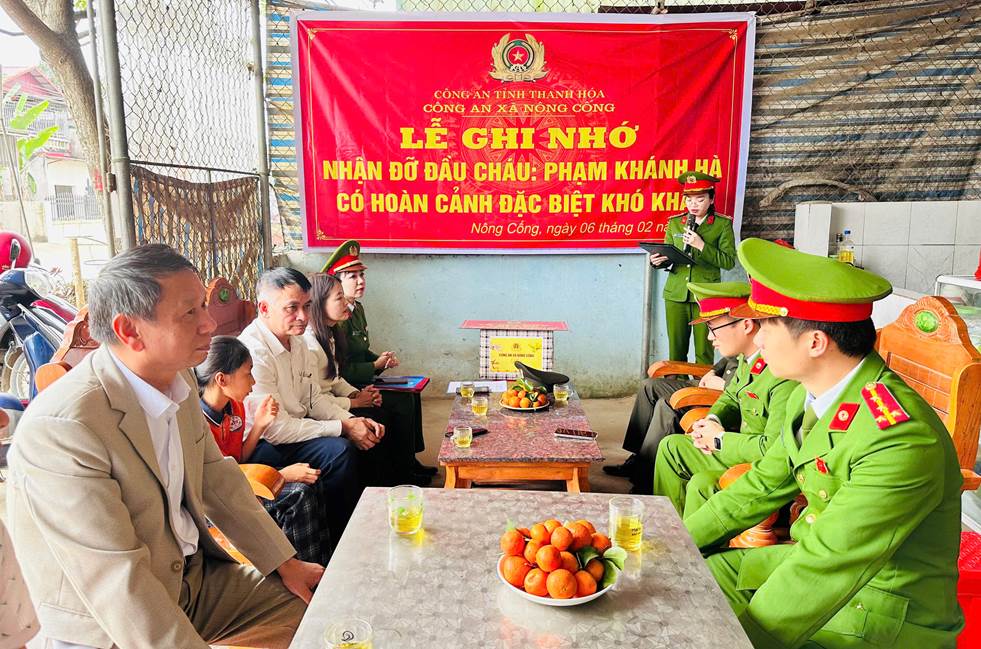 Chiều ngày 06/02/2026, Công an xã Nông Cống tổ chức Lễ ghi nhớ nhận đỡ đầu trẻ em mồ côi đối với cháu Phạm Khánh Hà, sinh năm 2015, trú tại thôn Quyết Thắng, xã Nông Cống. Cháu Hà là trẻ mồ côi bố, hiện đang là học sinh lớp 5D, Trường Tiểu học Vạn Thắng