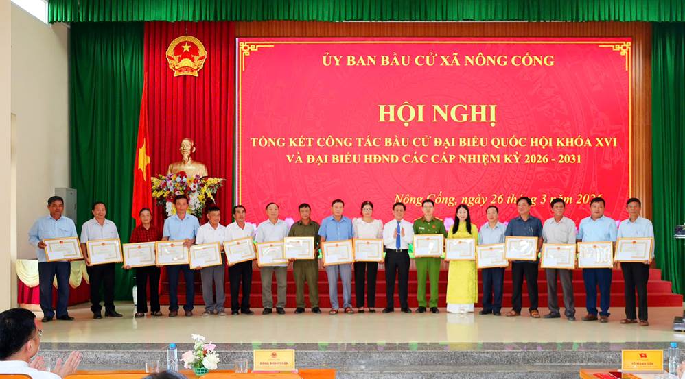 Ngày 26/3/2026, Ủy ban bầu cử xã Nông Cống đã tổ chức hội nghị tổng kết công tác bầu cử đại biểu Quốc hội khóa XVI và đại biểu HĐND các cấp nhiệm kỳ 2026–2031; đồng thời biểu dương, khen thưởng các tập thể, cá nhân có thành tích xuất sắc trong công tác bầu cử.