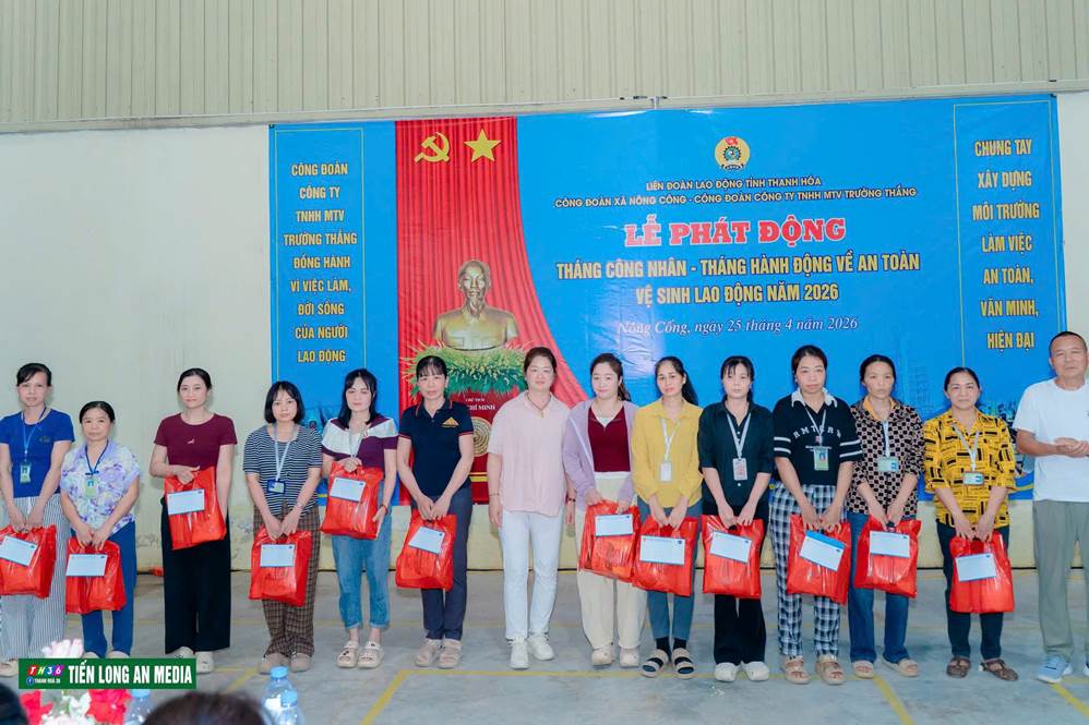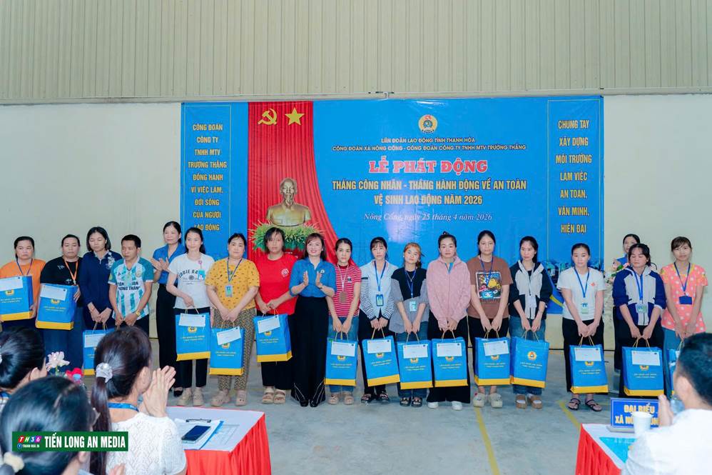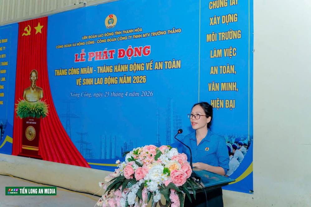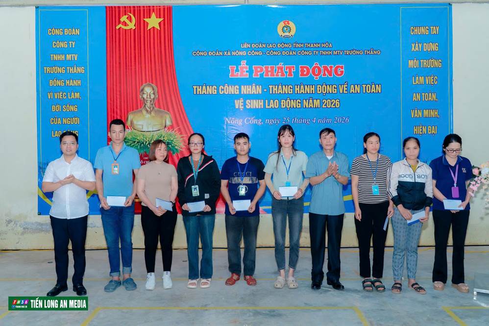 Chiều ngày 25/4/2026, tại Công ty TNHH MTV Trường Thắng, Công đoàn xã Nông Cống phối hợp với Công đoàn Công ty TNHH MTV Trường Thắng tổ chức Lễ phát động Tháng Công nhân và Tháng hành động Vệ sinh An toàn lao động năm 2026. Buổi lễ diễn ra trong không khí trang trọng, thiết thực, thu hút sự tham gia đông đảo của cán bộ, đoàn viên và công nhân lao động trong công ty
