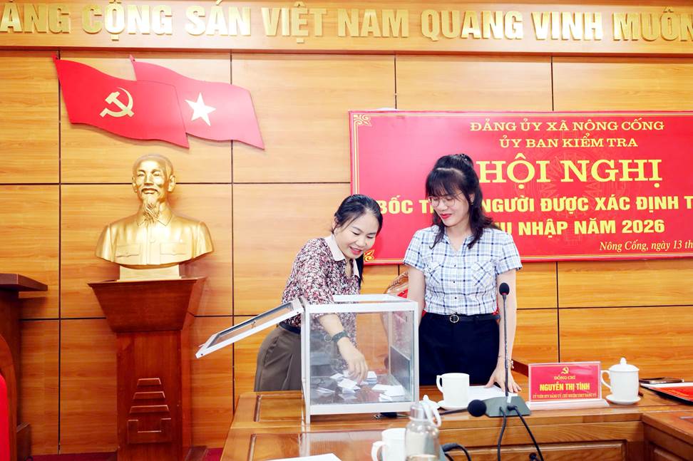 Chiều ngày 14/4/2026, Ủy ban Kiểm tra Đảng ủy xã Nông Cống đã tổ chức hội nghị bốc thăm lựa chọn ngẫu nhiên người được xác minh tài sản, thu nhập đối với cán bộ thuộc diện Ban Thường vụ Đảng ủy quản lý, có nghĩa vụ kê khai và công khai tài sản, thu nhập theo quy định